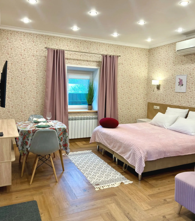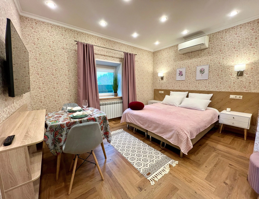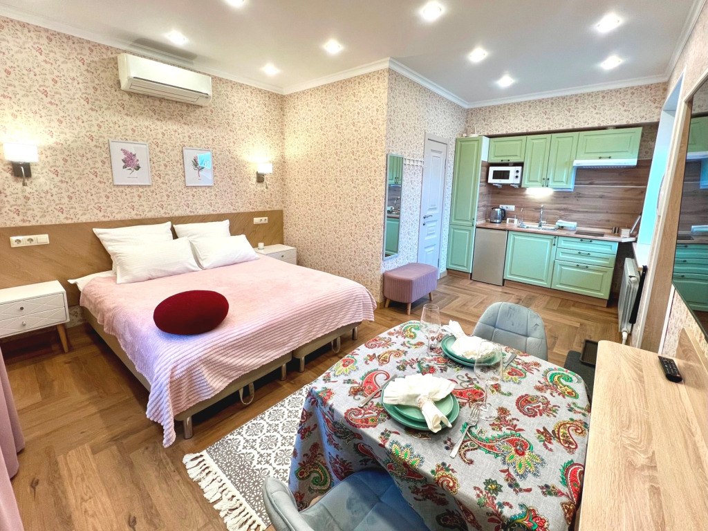 Номер уютно обставлен и оснащён необходимым, чтобы отдохнуть после долгого и насыщенного дня. Имеются телевизор. Оснащение зависит от выбранной категории номера.