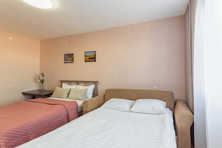 В случае проживания двух гостей на разных спальных местах, дополнительный комплект постельного белья оплачивается отдельно — 500.00 RUB.
