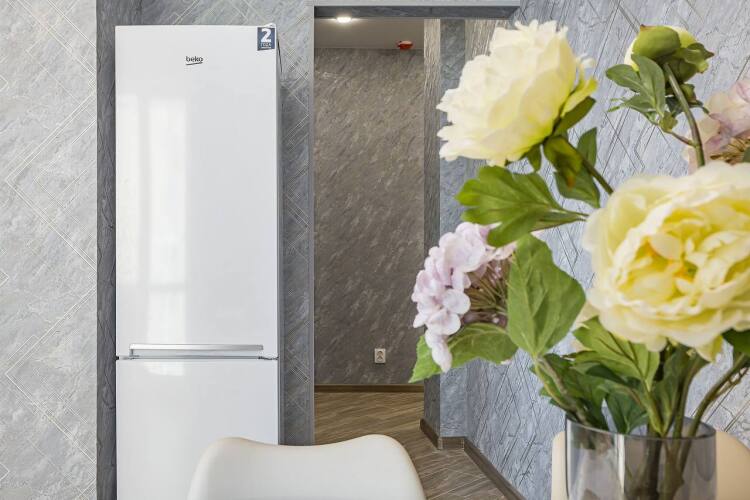 На кухне: холодильник, индукционная варочная панель, микроволновая печь, чайник, а так же посуда, приборы и фильтр для питьевой воды, чай, кофе, сахар, соль, масло, крупы.