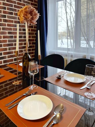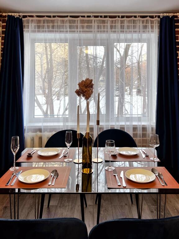 Есть необходимая бытовая техника и мебель: телевизор, холодильник, кухонная плита, стиральная машина, микроволновая печь, электрический чайник, фен, двуспальная кровать, двуспальный диван-кровать, стол. По запросу можно добавить дополнительное спальное место в виде переносной кровати. Постельное бельё и полотенца подготовлены прачечной. Имеется необходимая для использования и приготовления блюд посуда и столовые приборы. В распоряжении гостей: сушилка, утюг, гладильная доска, ролик, спутниковое телевидение, высокоскоростной интернет Wi-Fi. Уборка со специальными средствами, а также стирка и глажка белья и полотенец производится после каждого гостя. Предлагается приветственный набор в виде чая, кофе, сахара для каждого из гостей. Подсолнечное масло доступно в холодильнике. Есть предметы личной гигиены: гели и шампуни в дозаторах, зубные наборы, ватные диски, ватные палочки, зубочистки, одноразовые тапочки, предметы женской гигиены, салфетки, туалетная бумага.