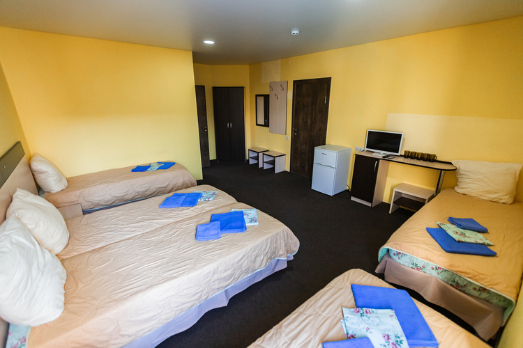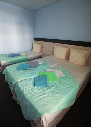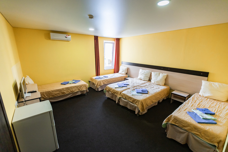 Уютные номера в пастельных тонах. Каждый номер оснащен холодильником, сплит-системой, телевизором, сушилкой для одежды и шкафом. Во всех номерах есть отдельная ванная комната с душем, туалетом и раковиной.