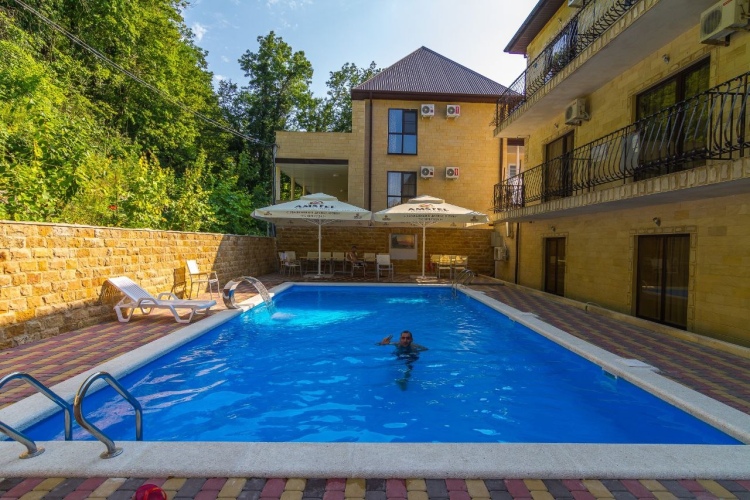 Бюджетный вариант для активного отдыха — отель «Отель Золотая Корона» находится в Новомихайловском. Этот отель располагается в 4 км от центра города. Рядом с отелем — Пляж посёлка Пляхо, Пляж Золотой берег и Пляж Орлёнок.