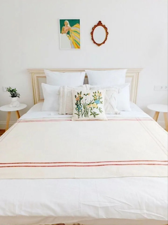 Спальня оснащена двуспальной кроватью 160x200 см, а гостиная — диван-кроватью 140x200 см.