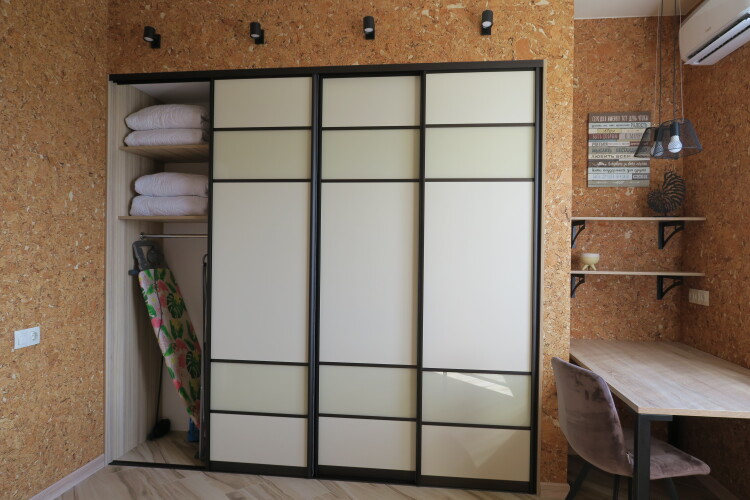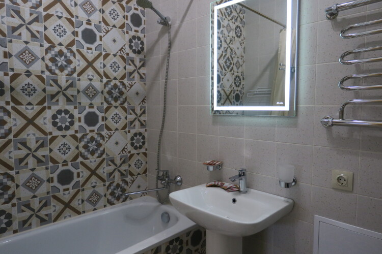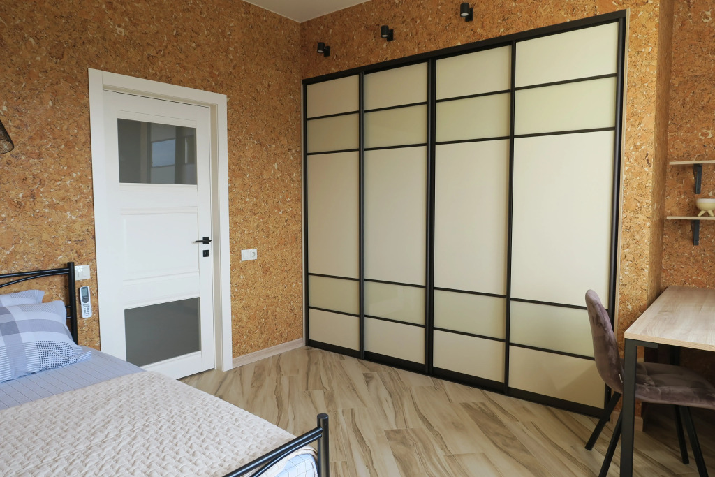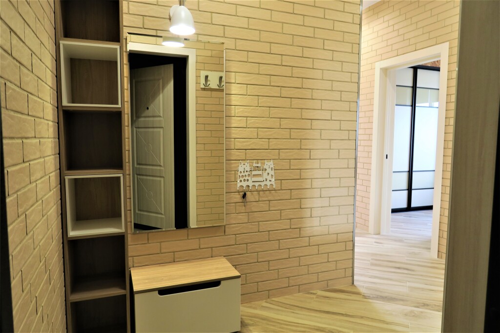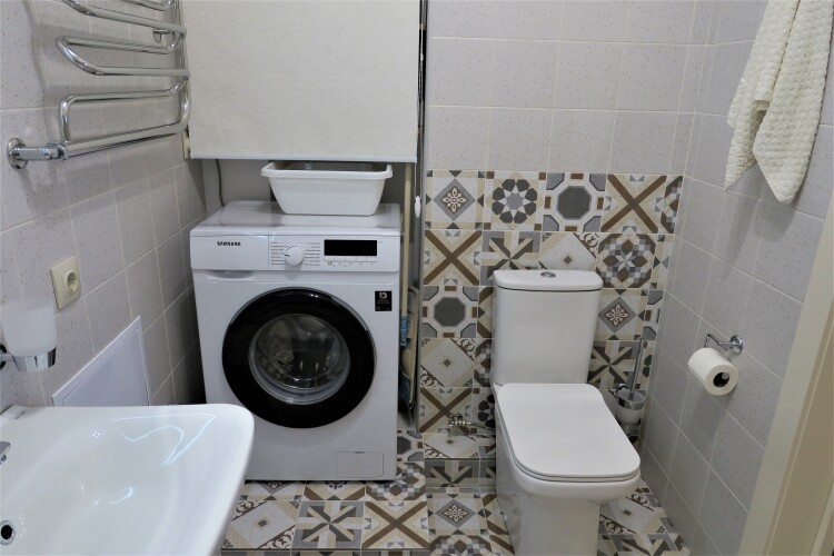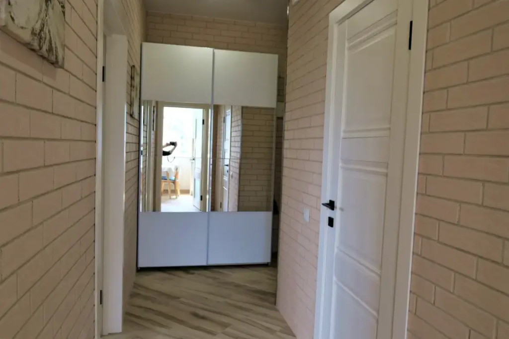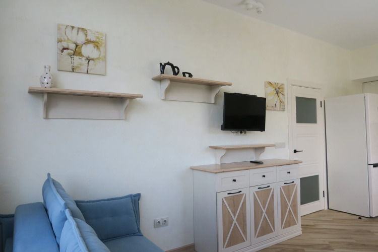 В квартире могут проживать до 4 человек. Имеется отдельная спальня с двуспальной кроватью, большим гардеробом и удобным рабочим местом, кондиционером и телевизором. В кухне-гостиной есть диван-кровать и телевизор.