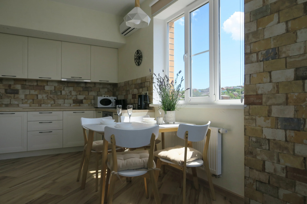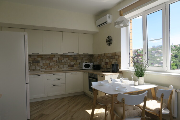 Кухня оснащена необходимой посудой, духовкой, посудомоечной машиной, холодильником, тостером, блендером, чайником. К услугам гостей быстрый Wi-Fi, стиральная машина, утюг, фен, гладильная доска, сушилка для белья, на случай отключения горячей воды — водонагреватель. Постельное бельё, комплект полотенец, мыло, шампунь, гель для душа, таблетки для посудомоечной машины, средства для стирки, дезинфицирующие средства.
