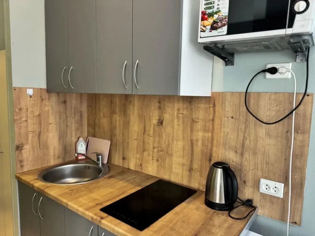 В распоряжении гостей апартаменты-студия, в которых имеется: двуспальная кровать, диван и постельное бельё, телевизор, бесплатный Wi-Fi, шкаф для вещей, кухонная зона с холодильником, микроволновой печью, электрической плитой и чайником, посудой и кухонной утварью. В ванной комнате имеются полотенца для каждого гостя, фен, средства гигиены — одноразовые шампунь, гель для душа, жидкое мыло, стиральная машина, сушилка, утюг и гладильная доска.