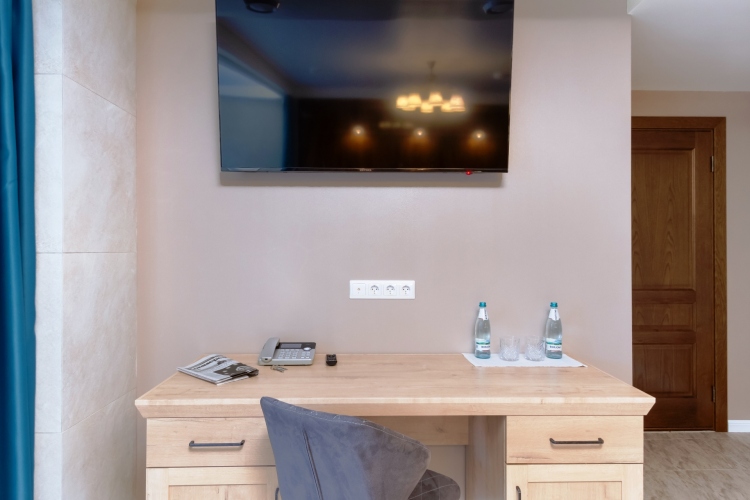 Номер уютно обставлен и оснащён необходимым, чтобы отдохнуть после долгого и насыщенного дня. Имеются телевизор и халат. Перечисленные услуги есть не во всех номерах.