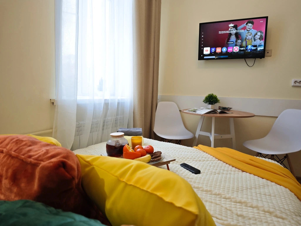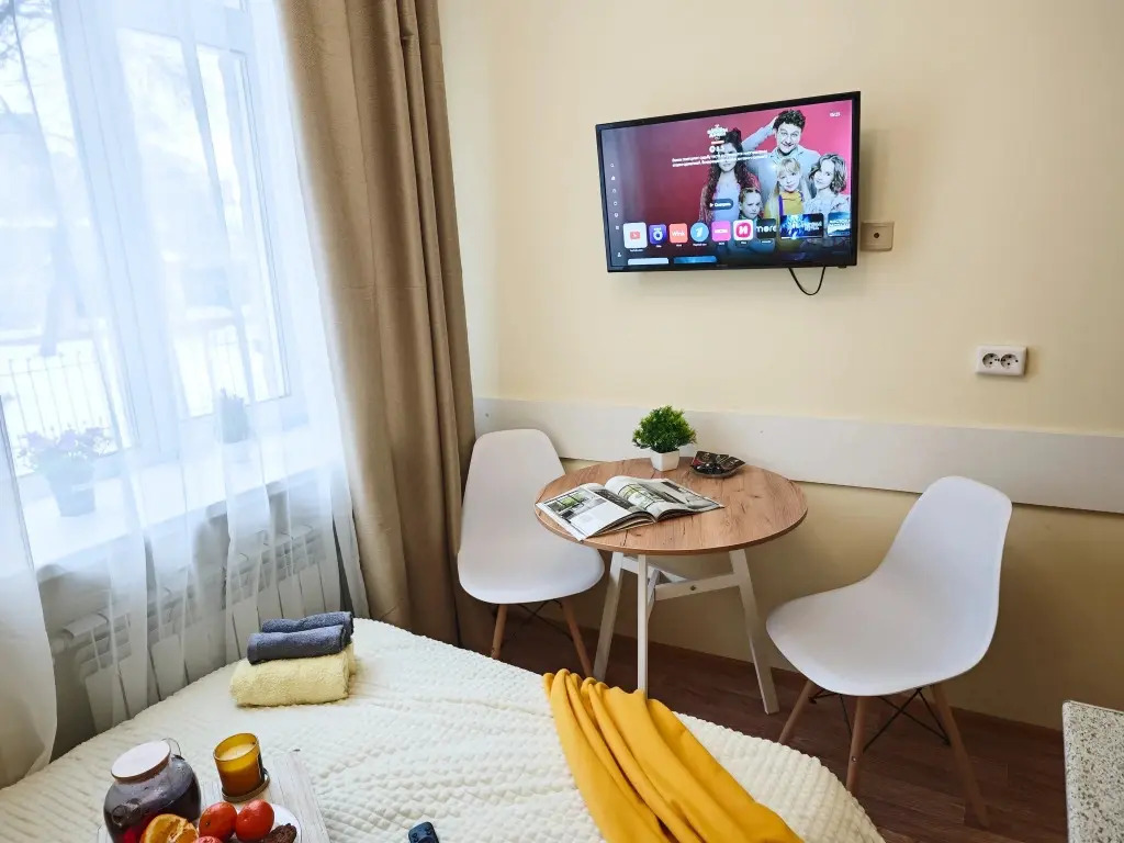 В номере вы найдёте телевизор. Оснащение зависит от выбранной категории номера.