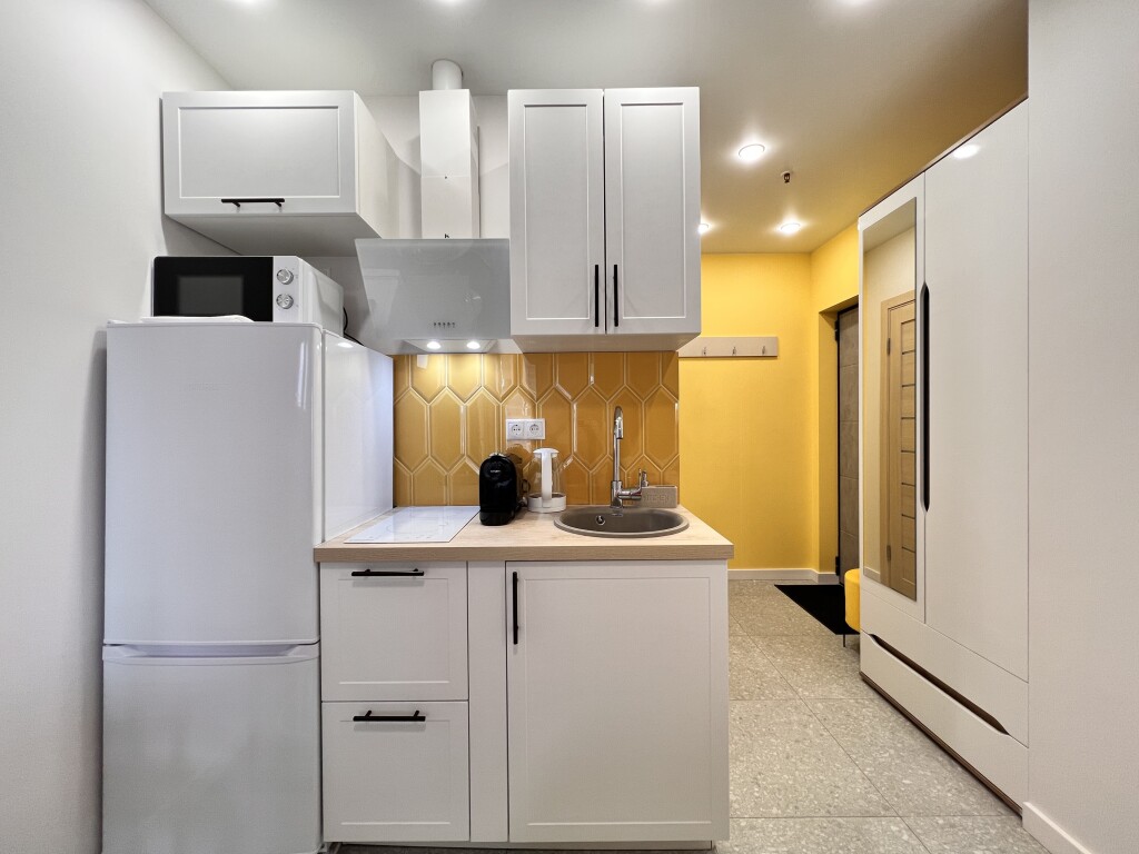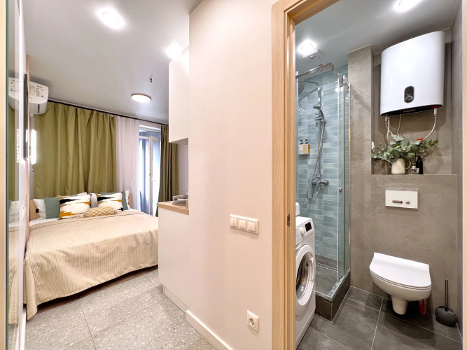 Удобно для гостей с ограниченными возможностями: на верхние этажи гостей поднимает лифт. А ещё в распоряжении гостей гладильные услуги и консьерж. Сотрудники апартаментов поддержат беседу на английском и русском.