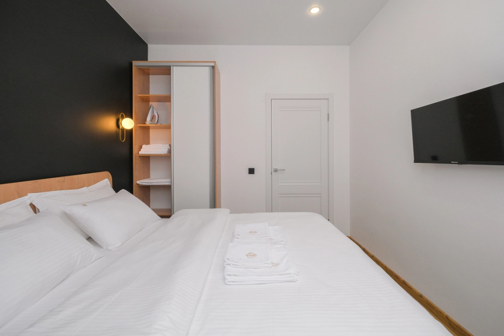 В номере вас будут ждать телевизор и халат. Перечисленные услуги есть не во всех номерах.