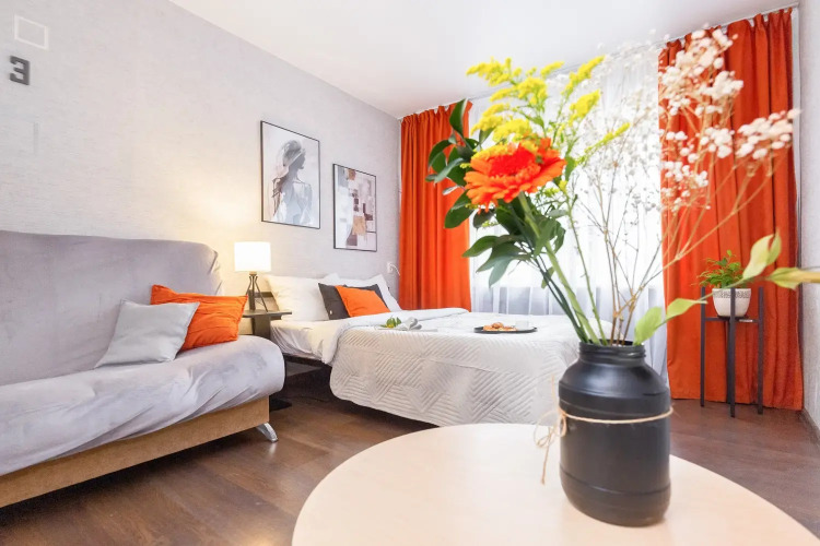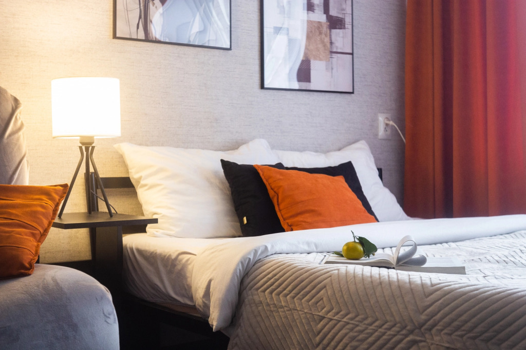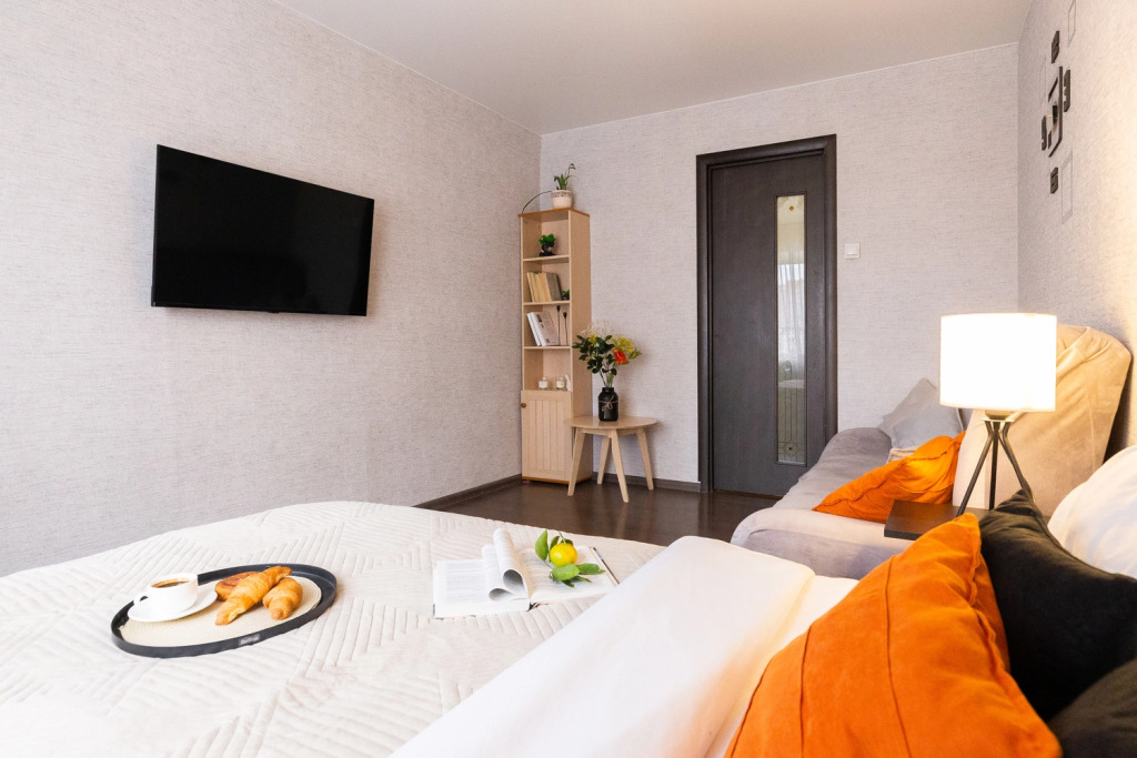 Возможно размещение до 6 человек. Спальные места представлены двумя двуспальными кроватями и диваном-кроватью. Гостям доступны: два вентилятора, постельное бельё, Wi-Fi, телевизор со Smart TV, стиральная машина, кухонная плита, холодильник, микроволновая печь, электрический чайник, фен, утюг, полотенца, шампунь, мыло, гель для душа, чай, сахар. Также на кухне есть посуда и кухонные принадлежности для приготовления еды, в том числе кастрюли, сковородки, тарелки, чашки, бокалы, стаканы, столовые приборы.