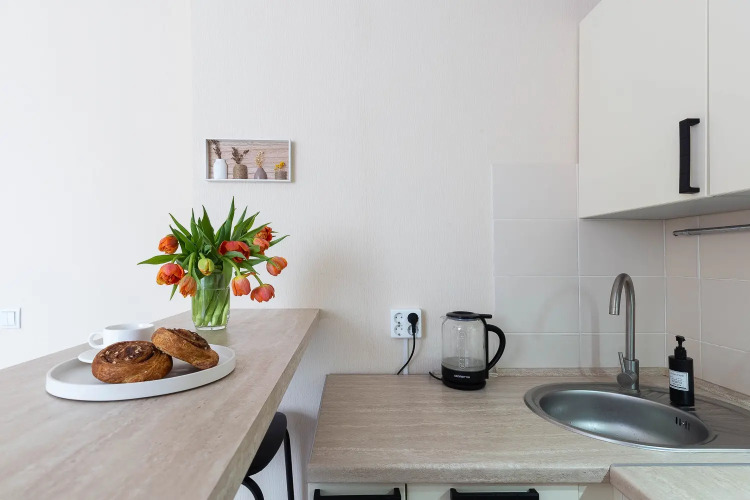 К услугам гостей квартира площадью 27 кв. м, оборудованная для проживания. К услугам гостей двуспальная кровать, с ортопедическим основанием, постельное бельё, полотенца, туалетные принадлежности, включая шампунь, мыло и гель для душа. Также в распоряжении гостей чай, сахар, Wi-Fi, телевизор со Смарт ТV, кондиционер, стиральная машина, плита, холодильник, микроволновая печь, электрочайник, фен, утюг, посуда и кухонные принадлежности для приготовления еды, в том числе: кастрюли, сковородки, тарелки, чашки, бокалы, стаканы, столовые приборы.