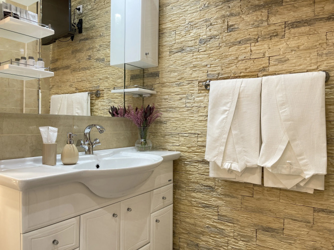 Номер уютно обставлен и оснащён необходимым, чтобы отдохнуть после долгого и насыщенного дня. Имеются телевизор и мини-бар. Оснащение зависит от выбранной категории номера.
