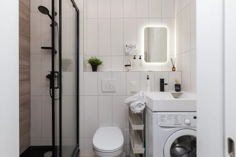К услугам гостей Wi-Fi, телевизор с функцией Smart TV, стиральная машина, плита, холодильник, микроволновая печь, электрический чайник, фен и утюг. Кухня укомплектована посудой и принадлежностями для приготовления еды: кастрюли, сковороды, тарелки, чашки, бокалы, стаканы, столовые приборы.