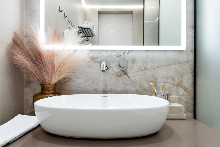 Ванная комната оснащена тёплым полом, тёплыми стенами и зоновым освещением. Также к услугам гостей полотенца, одноразовые тапочки, халаты, фен, стиральная машина и средства личной гигиены: гель для душа, мыло, шампунь.