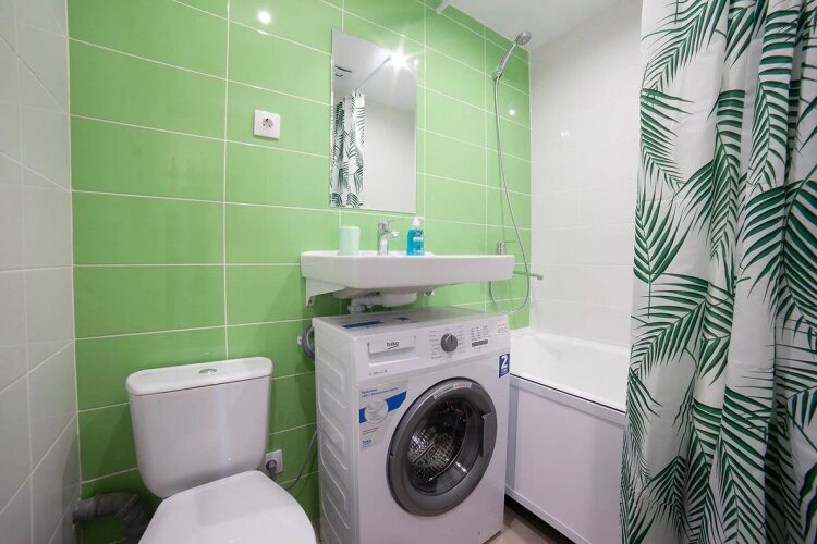 Также есть стиральная машина, сушилка, утюг и гладильная доска .