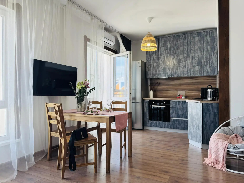 На территории работает Wi-Fi. Уточняйте информацию сразу при заезде. Здесь будем баловать себя водными процедурами: есть аквапарк. В путешествие можно взять питомца. В апартаментах возможно размещение с домашним любимцем. А ещё в распоряжении гостей индивидуальная регистрация заезда и отъезда.