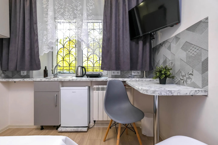 В номере гостей ждут халат. Оснащение зависит от выбранной категории номера.