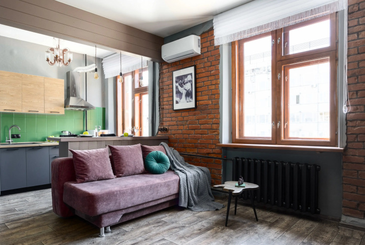В квартире: кондиционер, бойлер, блэкаут-шторы, двуспальная кровать 140х200 см, диван 140х200 см, постельное бельё, комплект полотенец и средства гигиены, Wi-Fi, телевизор, плита, микроволновка, посуда, фен, утюг, гладильная доска, стиральная машина.