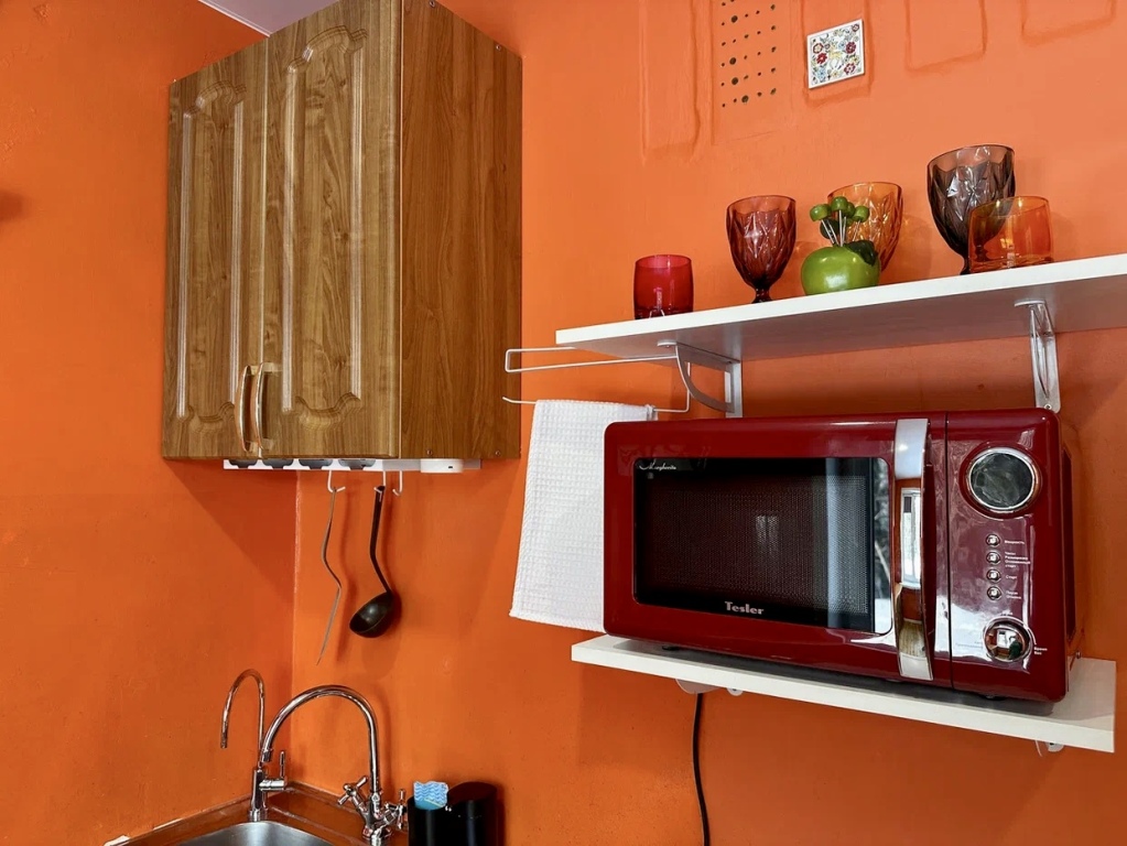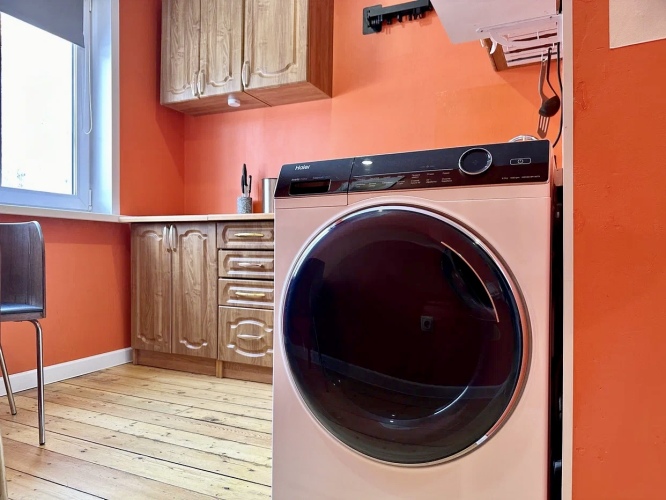 Гостям доступны скоростной Wi-Fi, телевизор, бойлер, колонка, фен, сушилка для белья, утюг, гладильная доска, стиральная машина, порошок, чайник, микроволновая печь, плита, холодильник, а также посуда, бокалы и штопор.