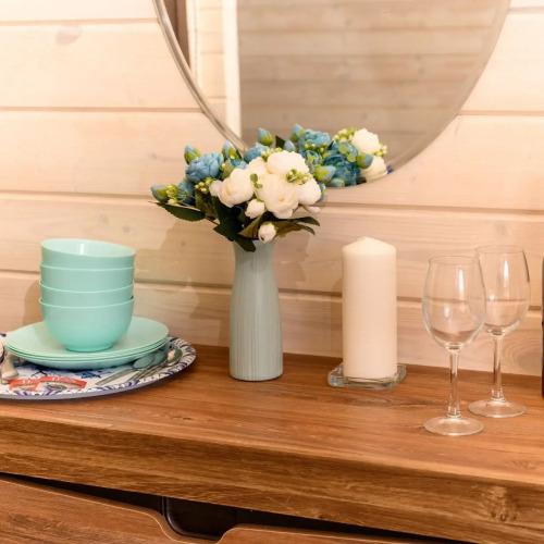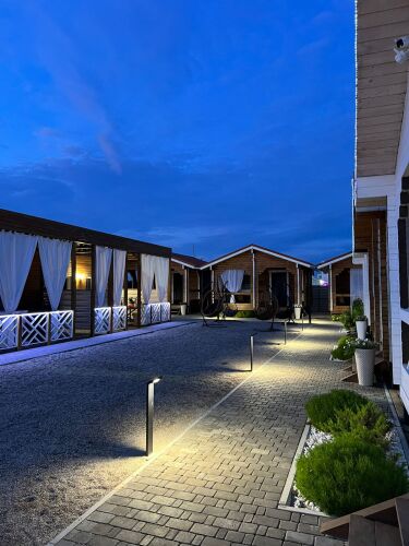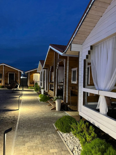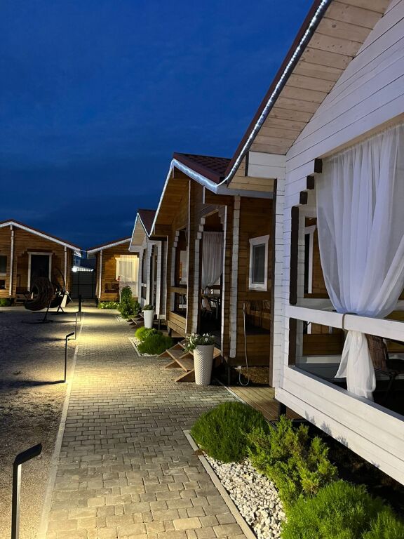 В одном домике может разместиться от 8 до 10 гостей. Домик обставлен и оснащён необходимым. Имеются телевизор и халат. Оснащение зависит от выбранной категории.