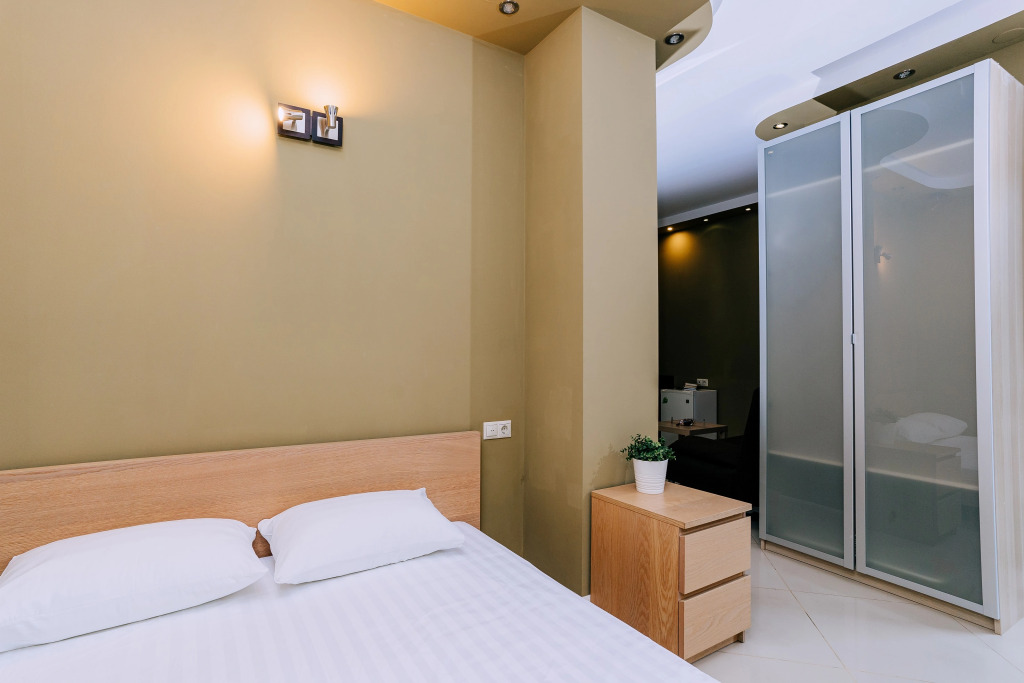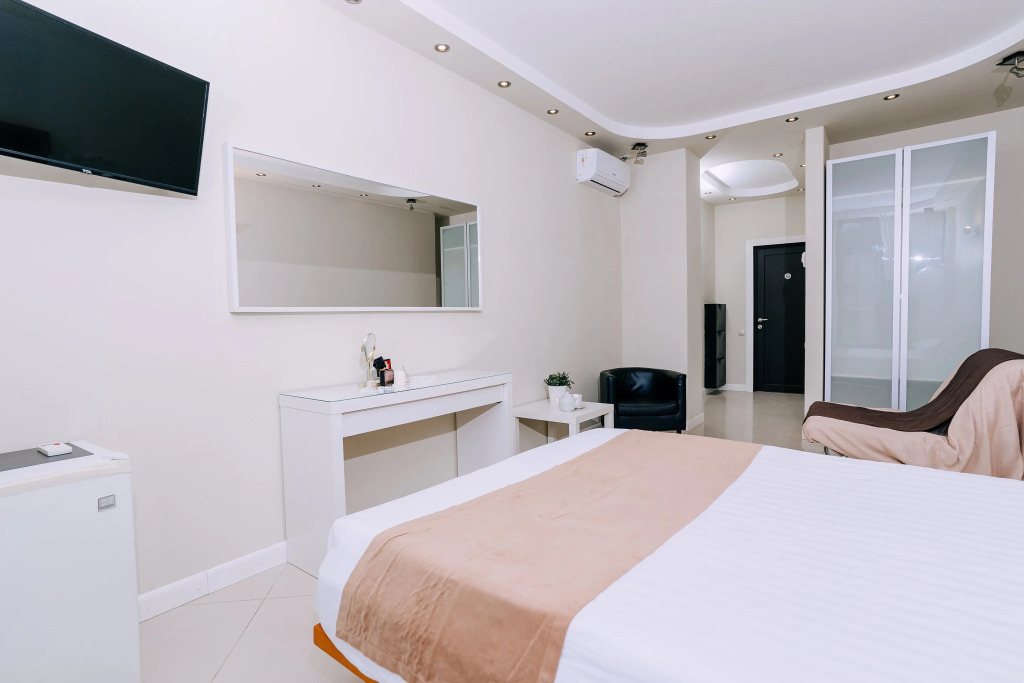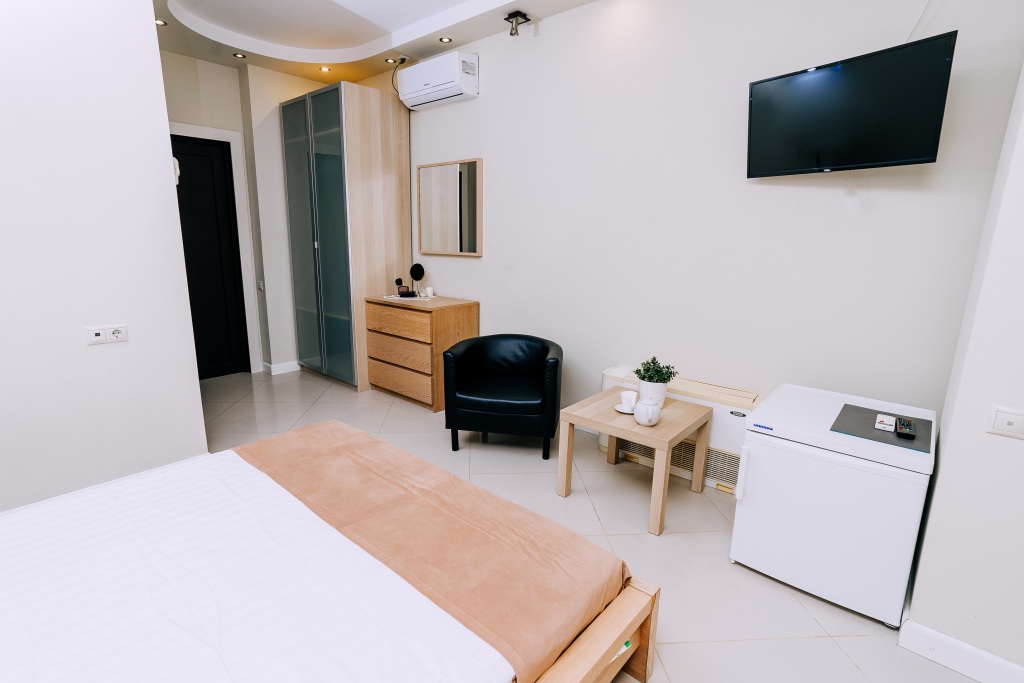 В номере вы найдёте телевизор. Оснащение зависит от выбранной категории номера.