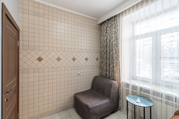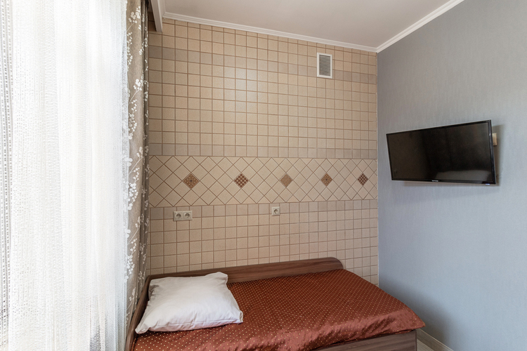 Если Вы любите спокойствие и уединение, цените уровень обслуживания, то небольшой уютный номер площадью 14 кв.м., именно то, что нужно для Вашего проживания в нашем отеле. Номер оснащён одной полутороспальной кроватью с ортопедическим матрасом, телевизором, холодильником, микроволновой печью, чайником. Для ваших вещей есть плательный шкаф с плечиками. Количество номеров данной категории в отеле – 3.