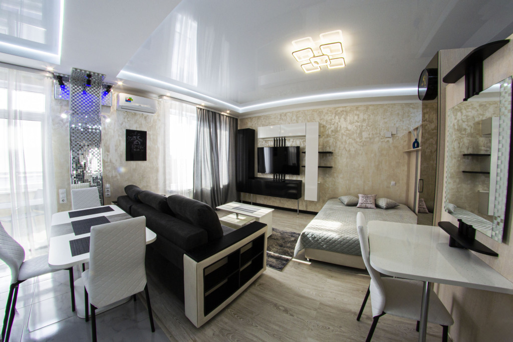 В номере вы найдёте телевизор. Оснащение зависит от выбранной категории номера.