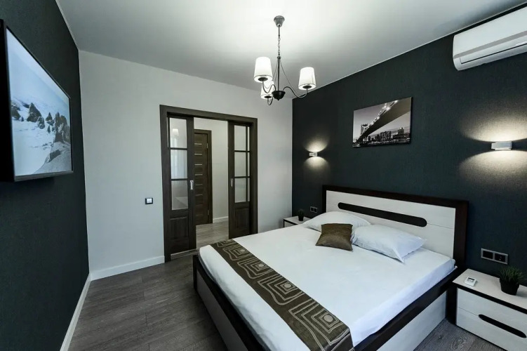 Номер уютно обставлен и оснащён необходимым, чтобы отдохнуть после долгого и насыщенного дня. Имеются телевизор. Оснащение зависит от выбранной категории номера.