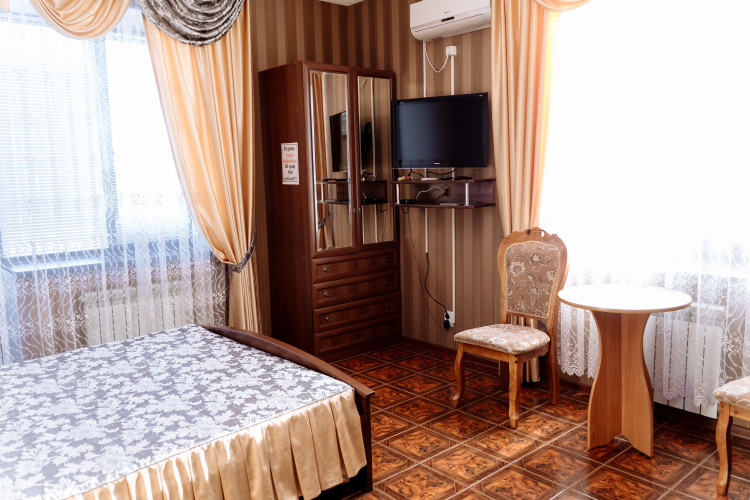 В номере вы найдёте телевизор и халат. Оснащение зависит от выбранной категории номера.