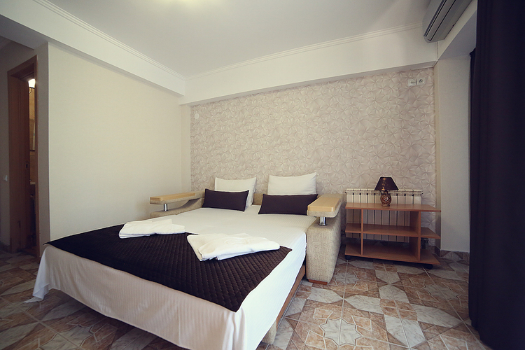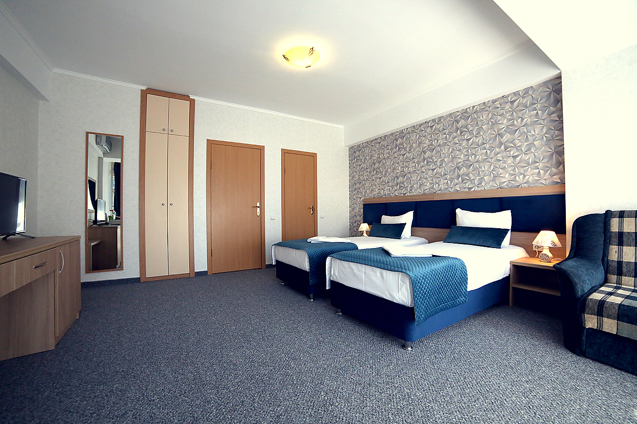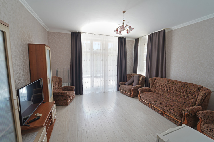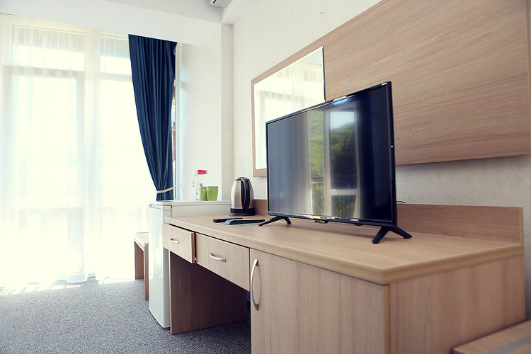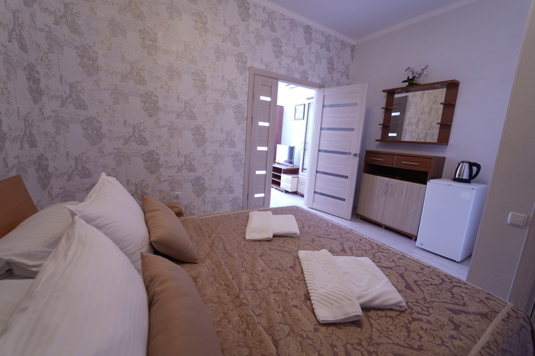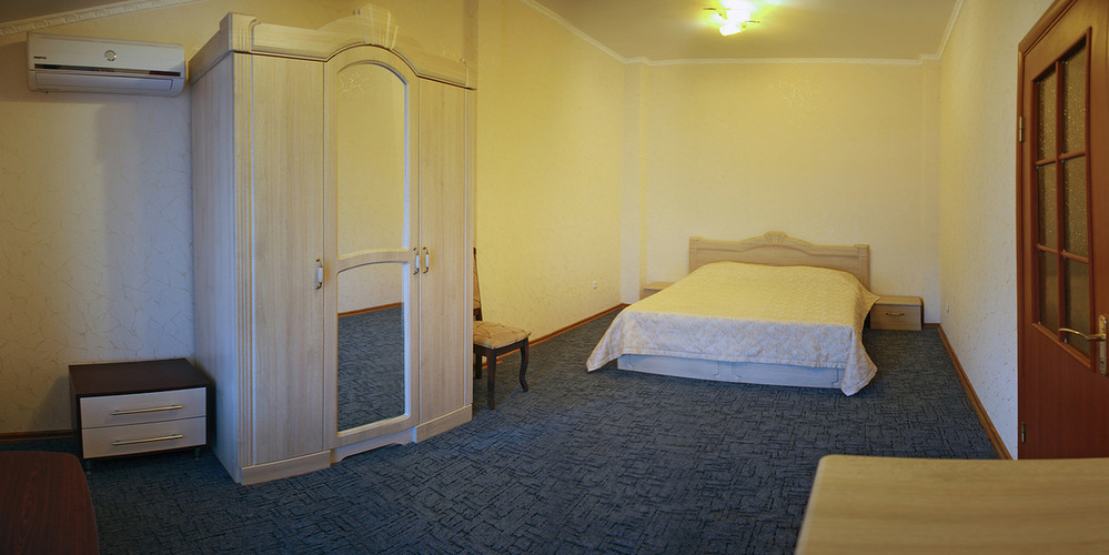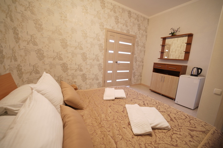 Однокомнатный номер с возможностью размещения трех гостей. Каждый номер этого типа с балконом и видом на легендарную Медведь-гору. В номере кондиционер, телевизор, холодильник, чайник, приборы для чаепития, душ, удобства.