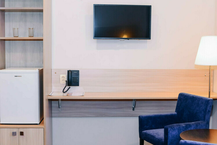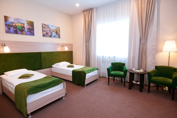 Комфортабельный одноместный/двухместный номер, выполненный в современном стиле с двуспальной или двумя односпальными кроватями на выбор. Для Вас в номере: индивидуальная система отопления, кондиционер, шторы Blackout, зона для работы, холодильник, телевизор (40D) с USB входом, беспроводной интернет (Wi-Fi), сейф, фен, туалетно-косметические принадлежности, тапочки, ортопедический матрас, чайная станция, дополнительное место по запросу.