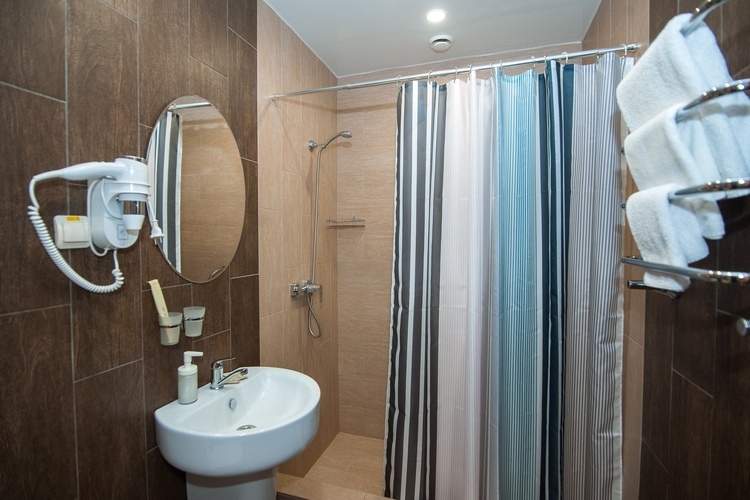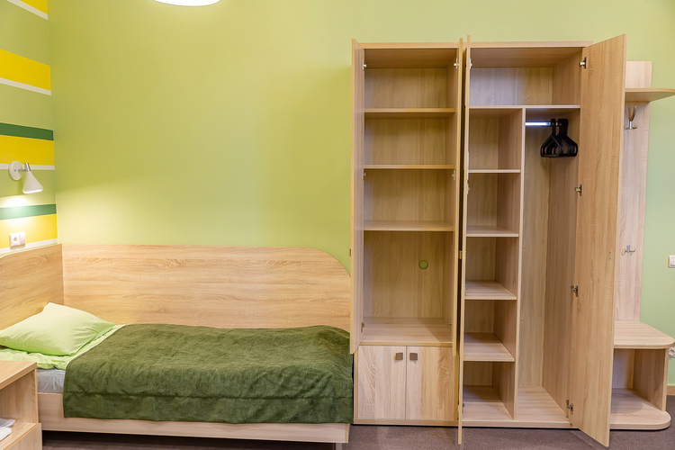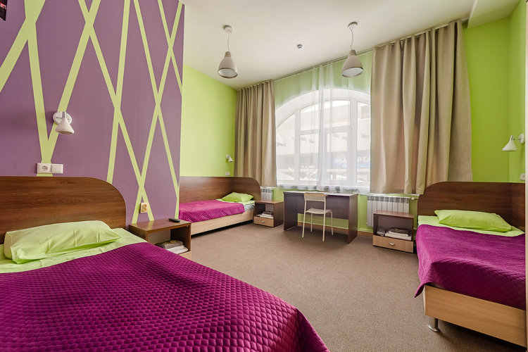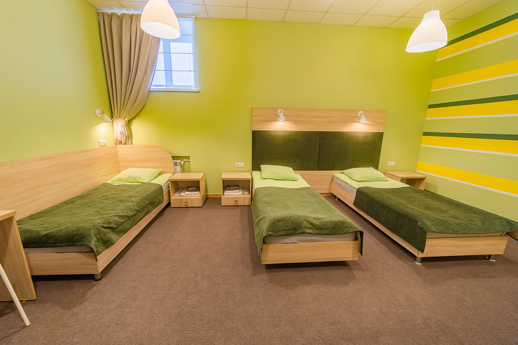 Стандартный трёхместный номер с собственной ванной комнатой вне номера. Номера данной категории расположены на 1 этаже. В распоряжении гостей небольшая обеденная зона: холодильник, СВЧ-печь, электрический чайник, кулер, посуда.