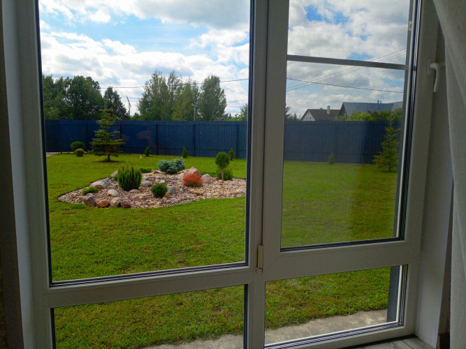 В распоряжении гостей коттедж на участке 15 соток, в котором могут разместиться до 8 гостей. В доме 3 спальни и кухня-гостиная с панорамным окном. Кухня оснащена бытовой техникой — имеются: газовая плита, духовой шкаф, посудомоечная машина, микроволновая печь, холодильник.
