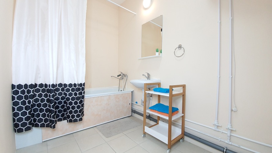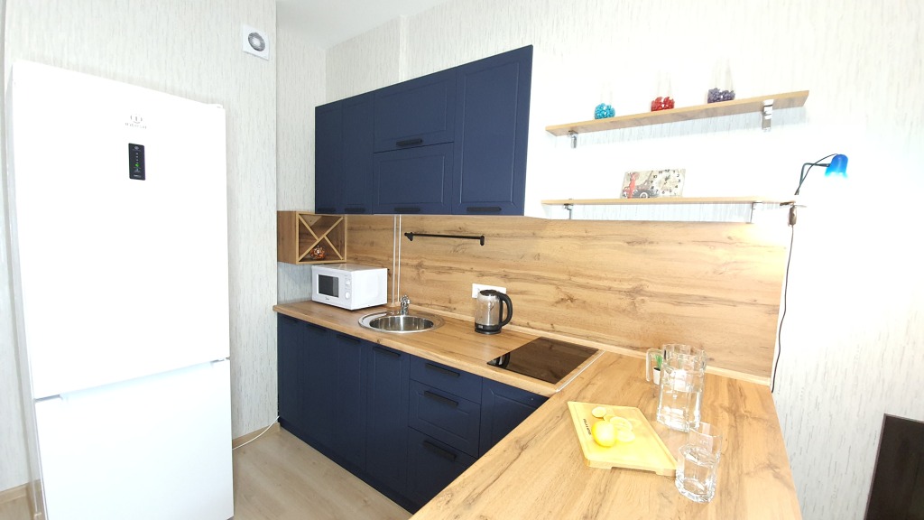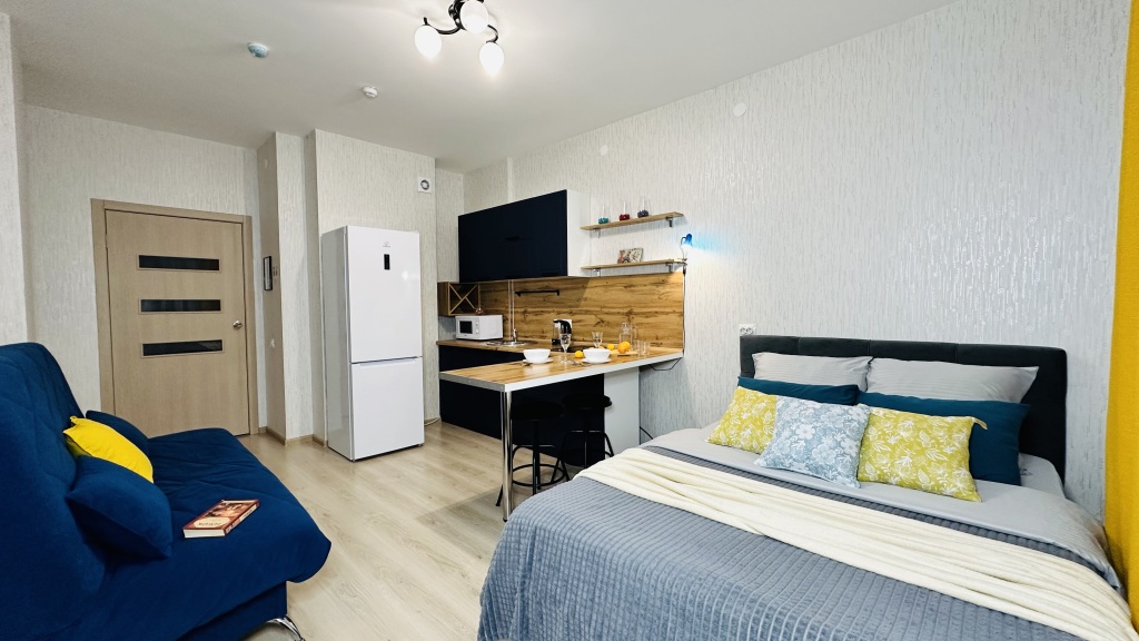 В распоряжении гостей: двуспальная кровать с ортопедическим матрасом с уже заправленным постельным бельём, двуспальный раскладывающийся диван, комплект полотенец для каждого гостя, одеяла и подушки, бытовая техника (телевизор, стиральная машина, холодильник, СВЧ-печь, индукционная плита, утюг, фен) гладильная доска, сушилка, Wi-Fi. Кухня укомплектована всей необходимой посудой для приготовления пищи.