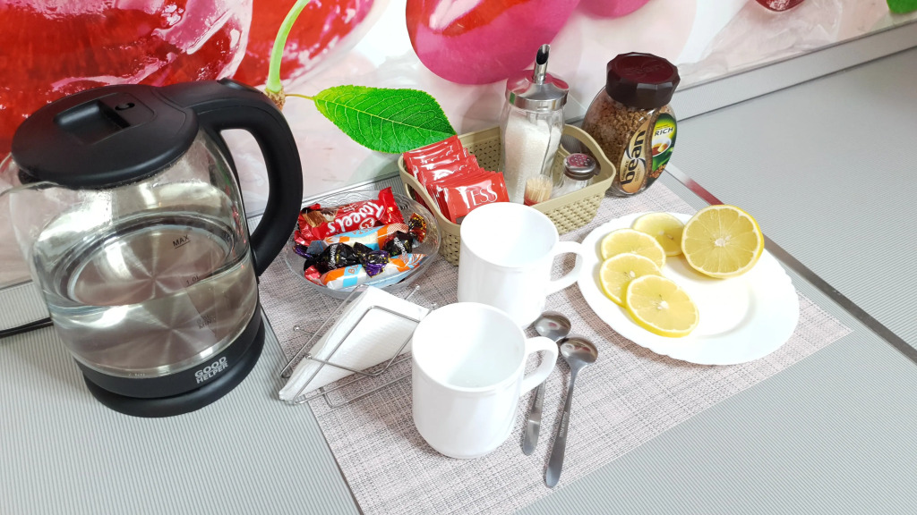 Гостям предоставляются — комплект полотенец, одеяла и подушки, чай, кофе, конфеты, шампунь, гель для душа и зубная паста. Есть Wi-Fi.