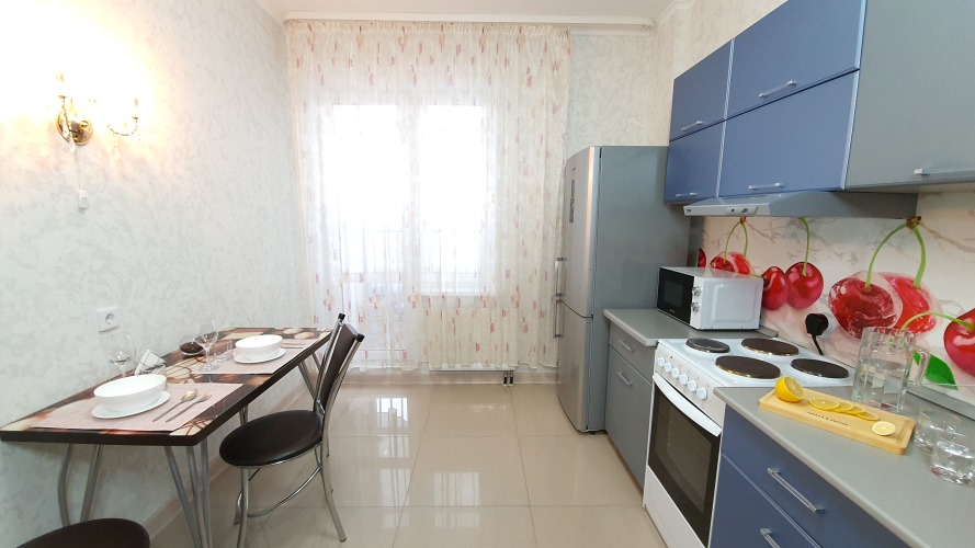 Для комфортного проживания гостей: двуспальная кровать с ортопедическим матрасом, раскладной диван, телевизор, стиральная машина, холодильник, СВЧ-печь, электрическая плита, утюг, фен, гладильная доска, сушилка. Кухня укомплектована необходимой посудой для приготовления пищи.