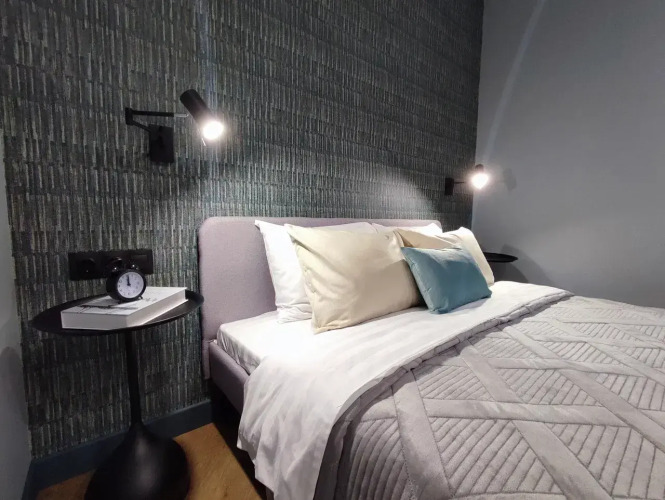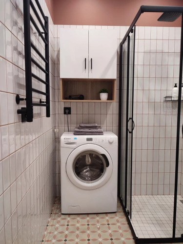 В апартаментах: оборудованная кухня, двуспальная кровать, Smart TV, бытовая техника, утюг, фен, стиральная машина, гладильная доска, бельё и полотенца.