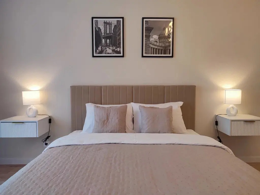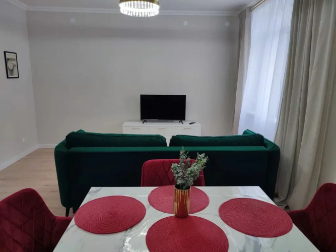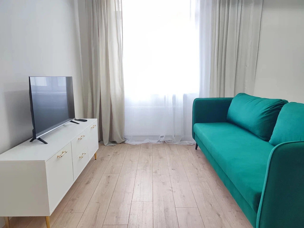 Однокомнатные апартаменты в доме бизнес-класса. В апартаментах есть 4 спальных места: двуспальная кровать и раскладной диван, Wi-Fi, Smart TV, оборудованная кухня, посуда, бытовая техника, утюг и гладильная доска, стиральная машина, фен, постельное бельё и полотенца.