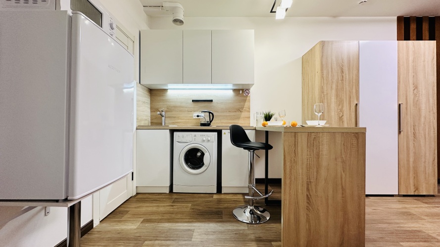 В распоряжении гостей: двуспальная кровать с ортопедическим матрасом с уже заправленным постельным бельём, двуспальный раскладывающийся диван, комплект полотенец для каждого гостя, одеяла и подушки, бытовая техника (телевизор smart TV, кондиционер, стиральная машина, холодильник, СВЧ печь, индукционная плита, утюг, фен) гладильная доска, сушилка.Wi-Fi. Кухня укомплектована всей необходимой посудой для приготовления пищи.