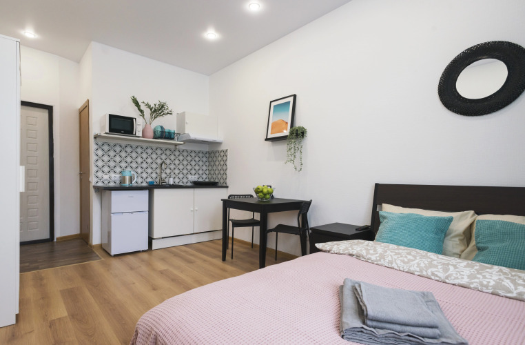 Уборка и замена постельного белья производится единоразово перед заселением гостей. Во время проживания гостей уборка и замена постельного белья не предоставляются, но всё необходимое для самостоятельной уборки и стирки белья имеется в студии.