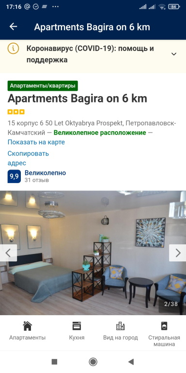Апартаменты Багира на проспекте 50 лет Октября 15/6, адрес на карте Петропавловск-Камчатский, проспект 50 лет Октября, д.15/6, с описанием номеров и доступностью онлайн бронирования на ресурсе vashotel.ru , цены проживания и удобства.