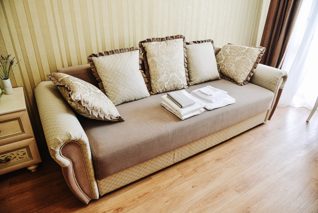 В номере гостей ждут телевизор и халат. Оснащение зависит от выбранной категории номера.