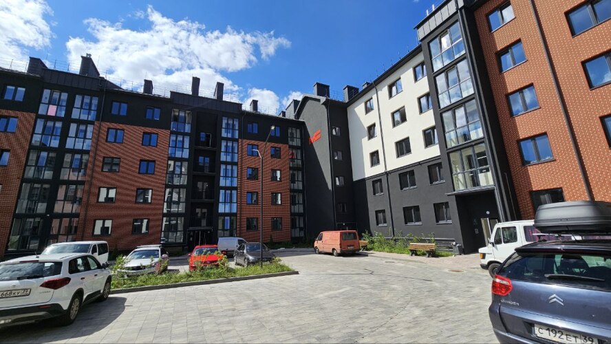 Территория жилого комплекса огорожена, есть места для парковки и отдельно расположенные детские и спортивные площадки.