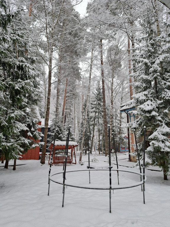 На участке в 20 соток: 3 дома (хозяйский и 2 гостевых домика), деревянные дорожки, есть уличная закрытая веранда-терраса и открытая веранда-терраса с камином и оборудованной летней кухней 50 кв. м, мангальная и костровая зоны, закрытая парковка для гостей, на участке вековые сосны и ели.