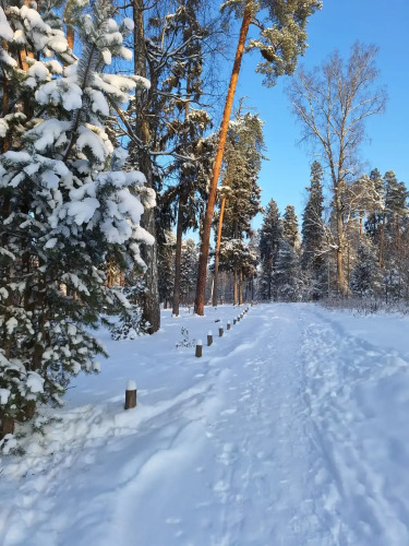 Частный дом в Заветах Ильича с голубой гостиной располагается в Пушкино. Район Заветы Ильича — это сосновый бор, в 150 м — парковая зона реки Серебрянка, пруд, прогулочная пешеходная зона. А далее — лес и водохранилище. Каток, беговые лыжи, санные горки для детей. Есть доставка продуктов и еды.
