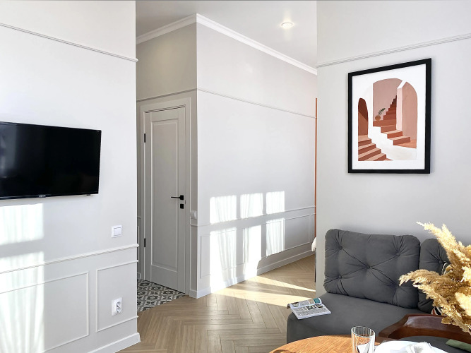 Апартаменты с дизайнерским ремонтом подходят для размещения 1-2 человек. Апартаменты содержат необходимое для пребывания гостей — например, техника и мебель.