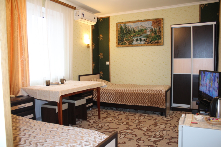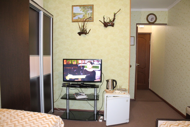 Номер уютно обставлен и оснащён необходимым, чтобы отдохнуть после долгого и насыщенного дня. Имеются телевизор. Оснащение зависит от выбранной категории номера.