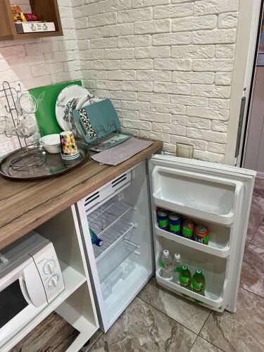 В квартире для комфортного проживания находятся: телевизор, холодильник, электрический чайник, кондиционер, стиральная машина, постельное бельё, пледы, одеяла, полотенца и средства гигиены, фен, микроволновая печь, утюг и гладильная доска. Также в распоряжении гостей есть посуда, столовые приборы, салфетки, штопор, открывалка, зубочистки и другое. Мини-бар доступен за дополнительную плату: вода в бутылках и напитки.