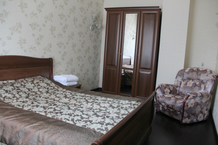 Двухкомнатные двухместные улучшенные номера: прихожая, гостиная, спальня. Телефон, телевизор, холодильник. Четырехместные номера с частичными удобствами (душ и туалет на этаже).